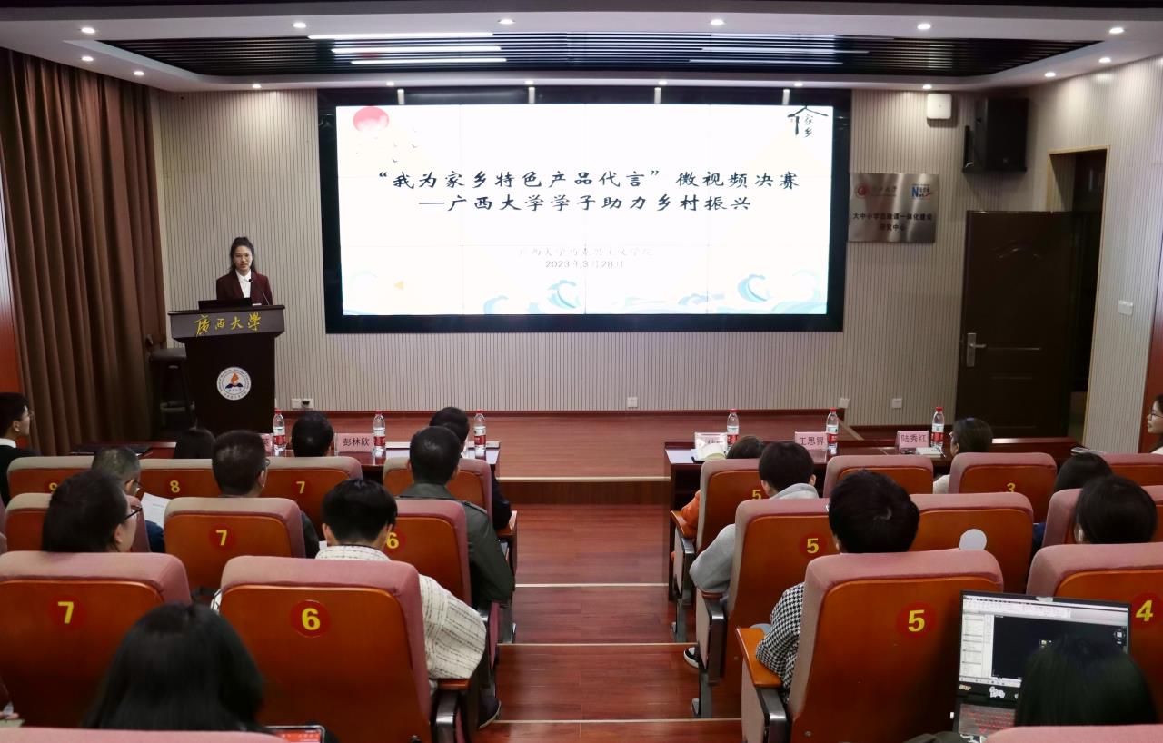 3月28日,我院举办“我为家乡特色产品代言——英国上市公司365学子助力乡村振兴”微视频比赛决赛。比赛评出一等奖2名,二等奖2名,三等奖3名,以青年人的视角、话语和方式展现了广西乡村振兴的发展成果和良好形象。
