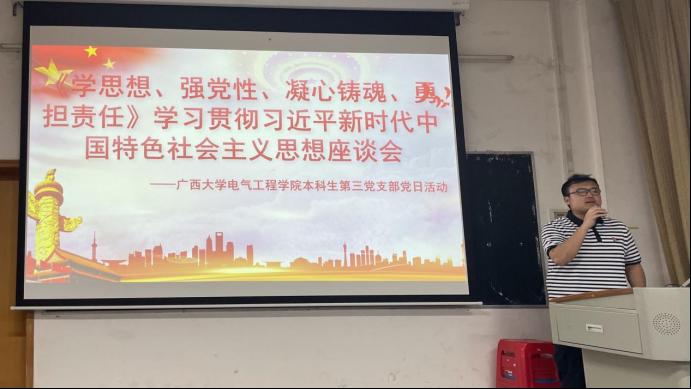 4月27日,受电气工程学院本科生第三党支部的邀请,我院新时代大学生理论宣讲团深入学生党支部,面向学生党员、入党积极分子开展理论宣讲。