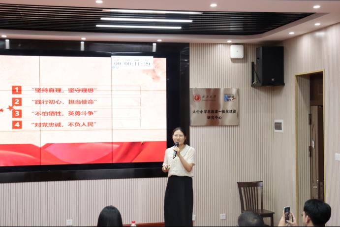 本次活动共有7支本科生和研究生团队参加。参赛队伍围绕思政课程中的有关章节或专题进行了教学设计。评委从教学设计、课堂教学等方面进行现场评分。在教学展示环节,选手们教学过程设计合理,语言表达准确生动,教学方法独特新颖,为在场观众带来了一堂堂深入人心的思政课,引发了阵阵掌声。