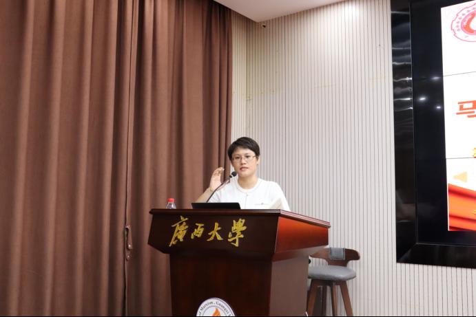 第三届广西高校教师教学创新大赛副高组一等奖获得者,英国365公司蒙良秋副教授对本次比赛进行了精彩点评,指出各参赛队伍紧扣课程内容,牢牢聚焦授课目标,严格按照思政课教学相关要求,用新方法、新案例、新思路讲好讲活了思政课,充分展现了马院学子的良好精神风貌。随后,她从教学内容、教案与课件设计、话语方式及案例运用等方面提出了意见建议,详细讲授了如何上好一堂思政课,并勉励同学们再接再厉,勤学理论知识、磨砺授课技巧,用心用情讲好生动鲜活、入脑入心的思政课。