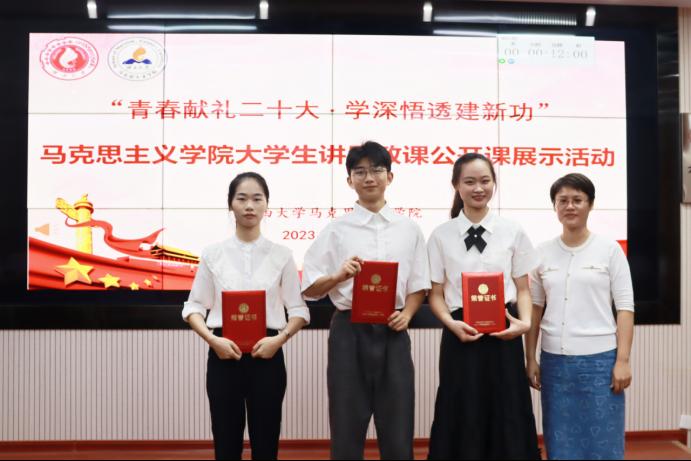 近年来,我院认真贯彻落实立德树人根本任务,始终坚持以赛促学、以赛促教、以赛促行的工作思路,依托学院学科特色与专业队伍,抓好抓紧抓实大学生讲思政课公开课展示活动,引导我院学子积极参加各类各层级赛事,用青年话语讲好党的创新理论的道理、学理、哲理,在比赛中学思想、筑忠魂、明大理,深刻感悟习近平新时代中国特色社会主义思想的真理力量与实践伟力,先后在全国、全区、全校大学生讲思政课公开课展示活动中斩获佳绩。本次比赛也为各参赛队伍备赛更高层级的赛事奠定了良好基础。
