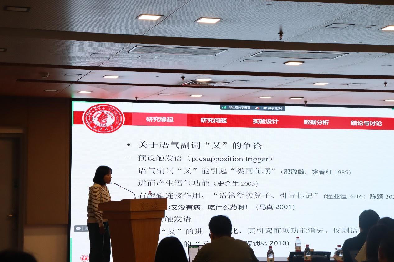 汇报会在主持人蒙佳慧热情洋溢的开场中拉开了序幕,20位来自不同高校的作者分别就各自的论文稿件进行学术汇报,在交流之中碰撞出思想的火花。20位作者汇报的内容涉及不同的学科领域以及不同的研究方法,为学术交流提供了丰富的资源和广阔的视野,进一步推动我校学子学术研究的多样化和全面发展。