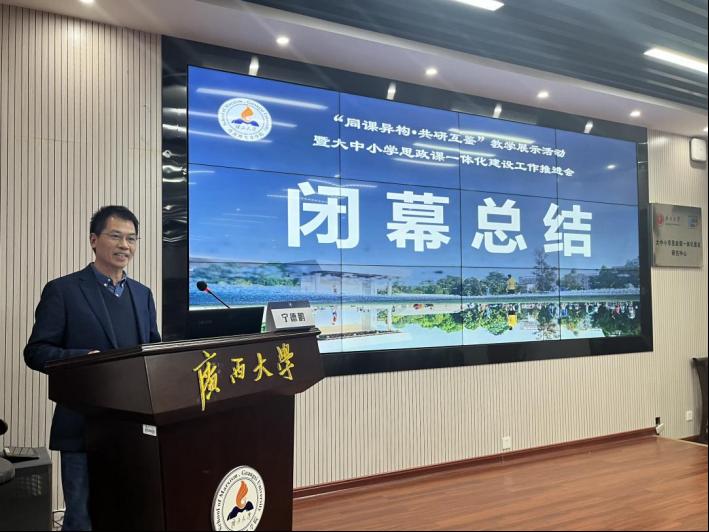 闭幕式环节,宁德鹏教授对此次活动进行了总结,授课老师在专家点评和与同行交流的过程中取得了明显的成效,展示了大中小学思政课一体化共同体建设的阶段性成果,好作品是不断打磨出来的,建议各位老师进一步精进课件内容,在未来工作中能够切实把此次会议的成果转化为教育实践。大家表示,此次会议坚持问题导向、目标导向和效果导向相结合,打通了各学段思政课教学的难点堵点,有很强的指导意义,让大中小学教师在共研互鉴中共同进步。