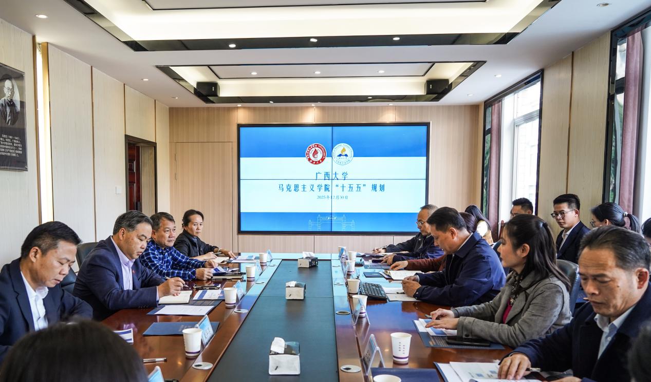 听取汇报后,肖建庄对我院“十四五”期间取得的工作成效给予肯定。他指出,学院领导班子思路清晰、举措务实,在党建引领、学科建设、育人成效等方面亮点鲜明,为学校学科建设作出了积极贡献。针对学院未来发展,他提出三点要求:一是巩固优势、持续突破,依托现有完整的人才培养体系、优质师资力量和成熟发展经验,进一步发挥学科引领作用,打破学科壁垒,推动新闻学院、法学院等兄弟学院协同创新,构建融合发展的学科生态;二是深耕东盟、打造特色,充分挖掘东盟相关研究要素,推动马克思主义理论与东盟政党治理、人文交流等领域深度结合,产出系列学术成果与特色教材,形成具有辨识度的核心竞争力;三是深挖资源、拓展维度,充分利用区内红色文化资源,推动红色文化研究与育人实践有机融合,同时加强与校内双碳研究院、资环材学院等单位的交叉合作,拓展研究领域与发展空间。他强调,青年教师要强化思考、注重实践,既要“拼命教、拼命干”,也要“会教书、会学习、会工作、会生活”,主动下沉一线开展调研,充分借助校内留学生资源,在实践中积累鲜活素材、提升学术研究能力。