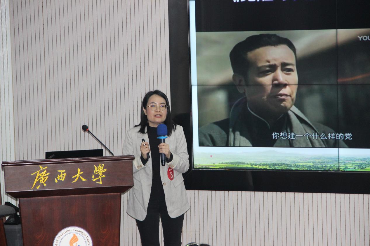 第四届全国高校思政课教学展示活动广西入围选手南宁师范大学庞晨、南宁学院叶文香、柳州职业技术大学冯新宇及其团队在专家指导下现场磨课,并对标国赛流程,按照“8分钟专题讲授、3分钟现场解疑释惑和3分钟读书储备考查”的形式进行现场展示。