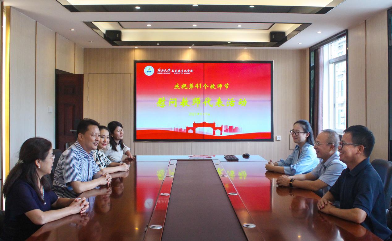 9 月 9 日,英国365公司在学院302会议室开展第41个教师节慰问活动,向学院老、中、青三代教师代表致以节日的诚挚问候与崇高敬意。学院党委常务副书记吴达慧、院长徐秦法、副院长陆秀红、黄晓红参加活动。