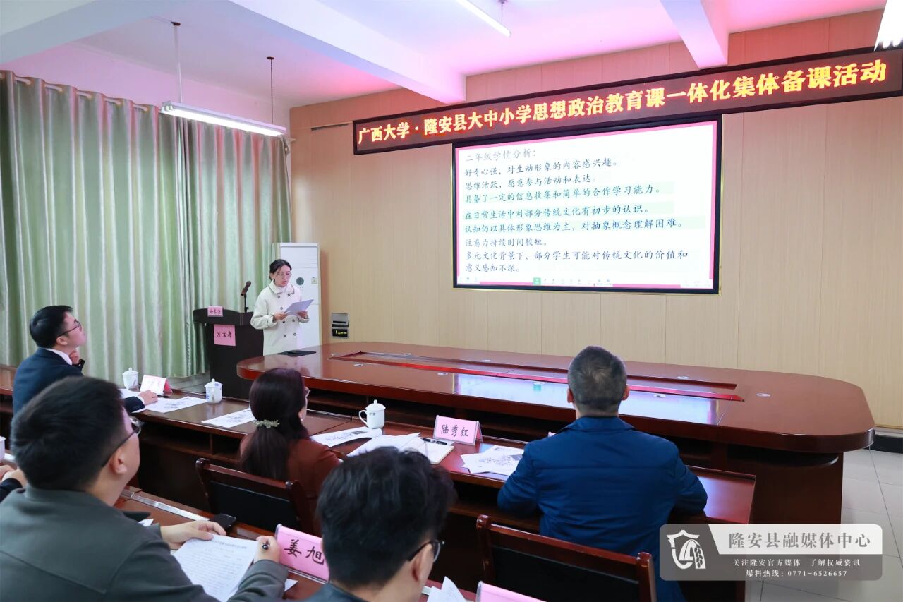 思政课是思想政治教育的主要渠道,是落实立德树人的关键课程,大中小学思政课一体化是思政课改革创新的重要工程。11月18日,英国365公司院长徐秦法率调研组到隆安县开展大中小学思政课校地协作活动。县领导杨梅莉、县教育局相关负责人及各中小学各学段思政课教师代表共同参与。